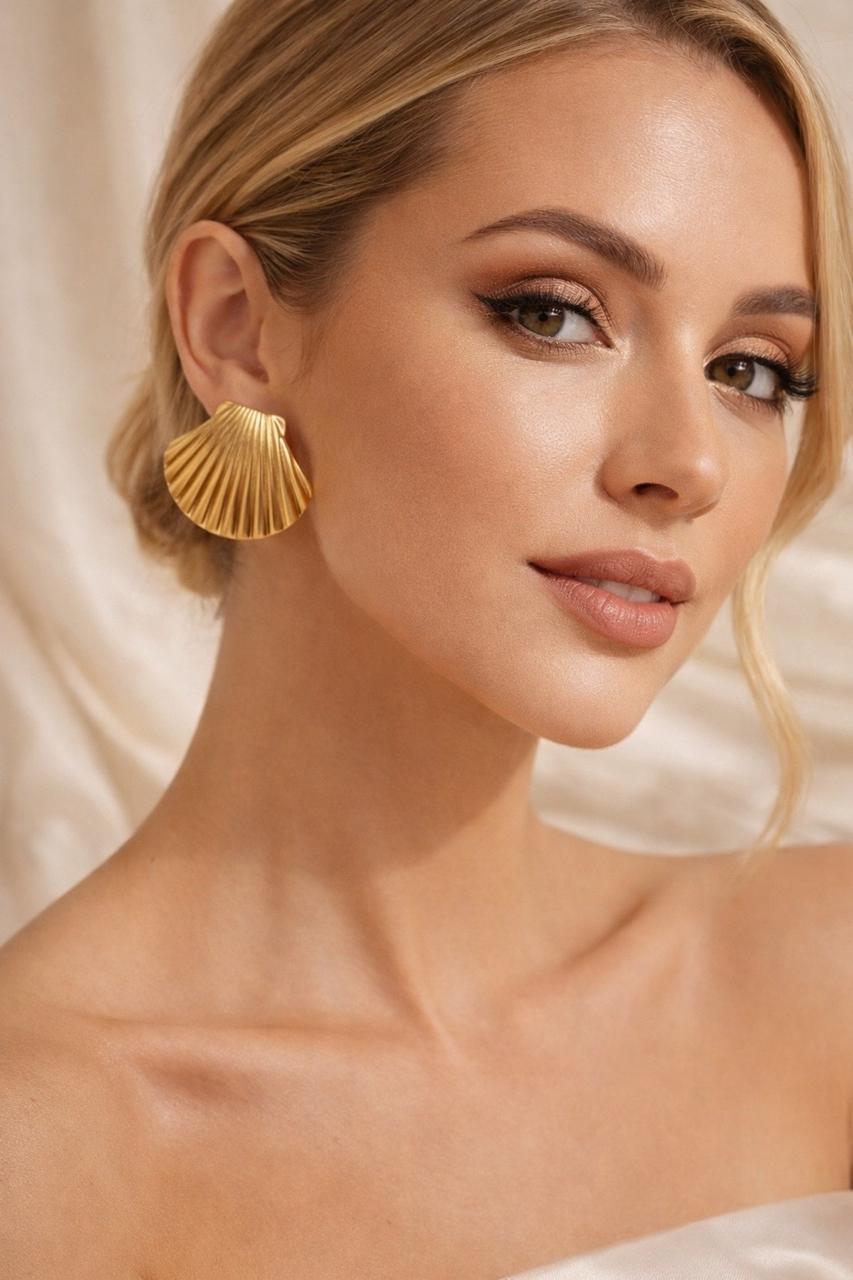 Inspired by the elegance of ocean shells, the Aurielle Shell Earrings feature a sculpted gold design with fine ridged detailing that reflects light beautifully. Their bold yet minimal style makes them perfect for elevating both everyday outfits and evening looks. Lightweight, comfortable, and timeless — these earrings bring effortless luxury to your jewellery collection.