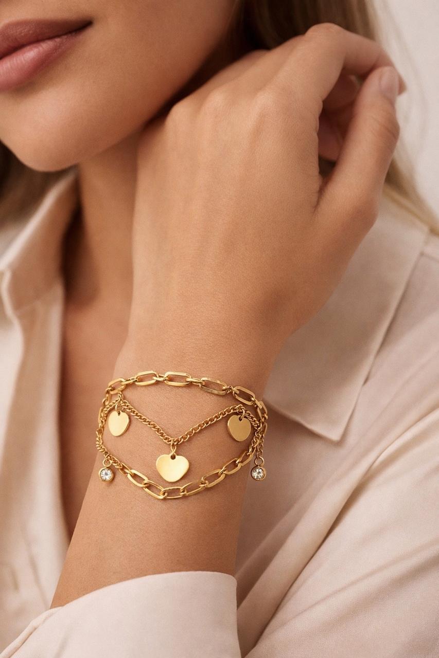 Add a touch of elegance to your everyday style with the Eliora Heart Charm Bracelet. Designed with delicate double-layer chains, this bracelet features charming heart pendants and sparkling crystal accents that create a perfect balance of minimal beauty and feminine sophistication.