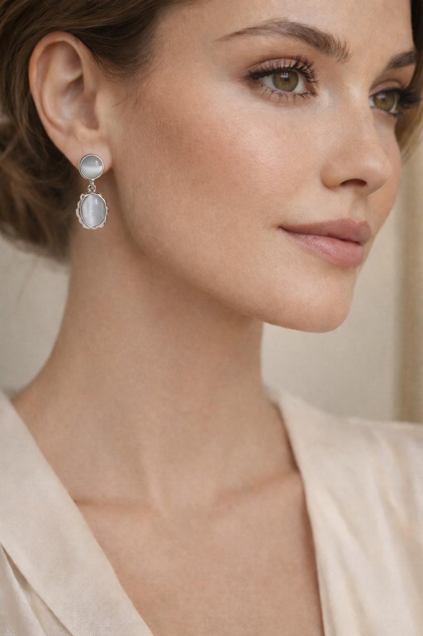 Elegant and timeless, the Luna Glow Drop Earrings feature luminous cat-eye stones set in a sleek silver-tone frame. The dual-stone design adds graceful movement and subtle shine, making them perfect for both everyday elegance and evening occasions. Their soft glow and refined shape create a sophisticated statement while remaining lightweight and comfortable.